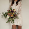 Please note that each of our bridal bouquets is unique and slightly different. We use seasonal flowers and foliage which may sometimes differ slightly from the ones pictured but will be of the same colour and texture. If you require specific flowers, please get in touch to discuss.