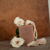 A fragrant cleansing bar made with french pink clay and infused with natural scents of sensual rose geranium and patchouli. Each soap bar comes in a canvas drawstring bag.
