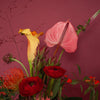 An ode to the year of the wood dragon. Bright and auspicious filled with blooming gerberas, vibrant anthurium, and golden lilies symbolizing good fortune and prosperity for the year ahead. A wild celebration of Lunar New Year.